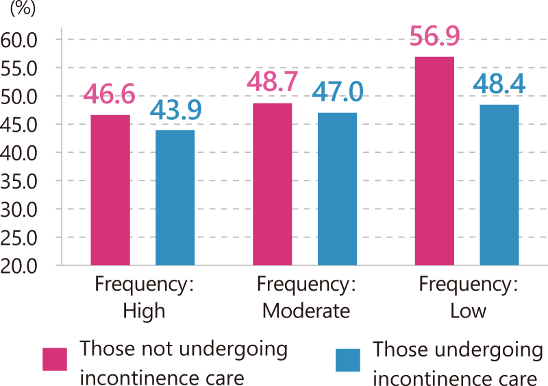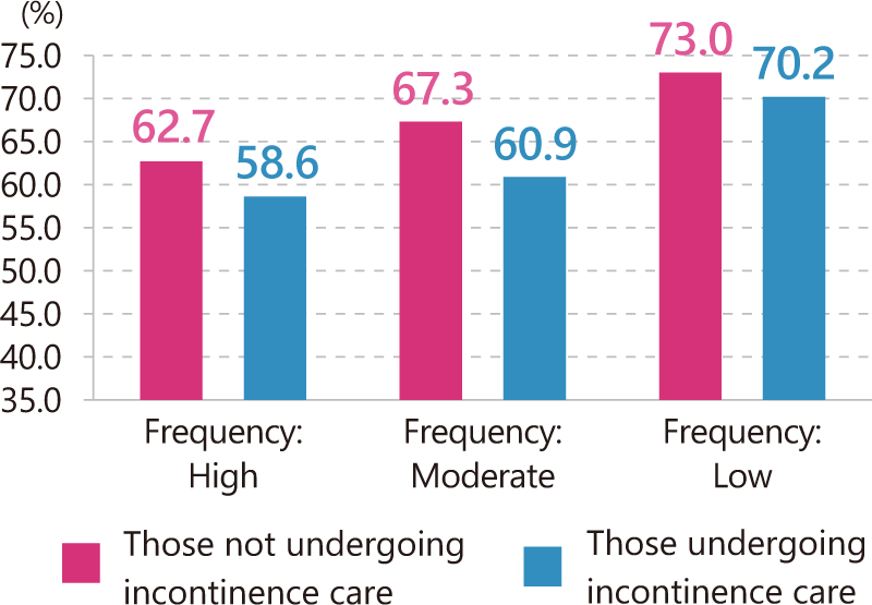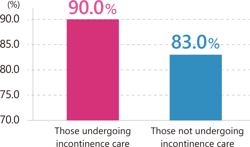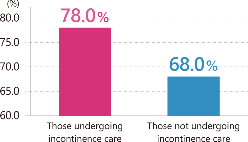 Focusing on life satisfaction in our survey, people with incontinence care scores higher rate as final result.