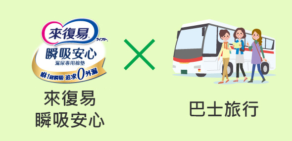 當參加造訪各種觀光景點的巴士旅行時,行進中跟朋友快樂的談天也是樂趣之一。但是,擔心想去廁所卻不能去的人很多,如果有「來復易瞬吸安心」的話,就能更加享受旅行的樂趣了!