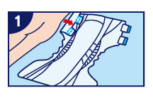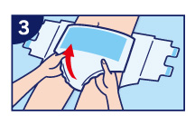 將尿片置於紙尿褲立體防漏側邊裡,並將身體移回紙尿褲中央。