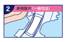 讓使用者側臥,將紙尿褲平鋪於床上,兩側有貼膠帶的一端為背部,紙尿褲的上緣約對齊肚臍的位置