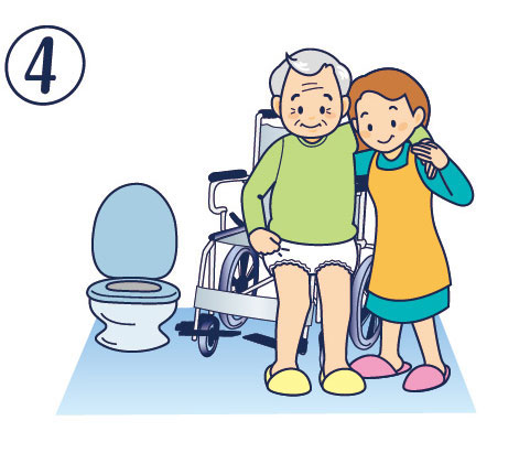 如廁後,協助將內褲型紙尿褲套進雙腳中
