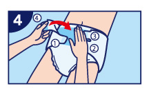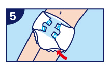 將尿片置於紙尿褲立體防漏側邊裡,並將身體移回紙尿褲中央。