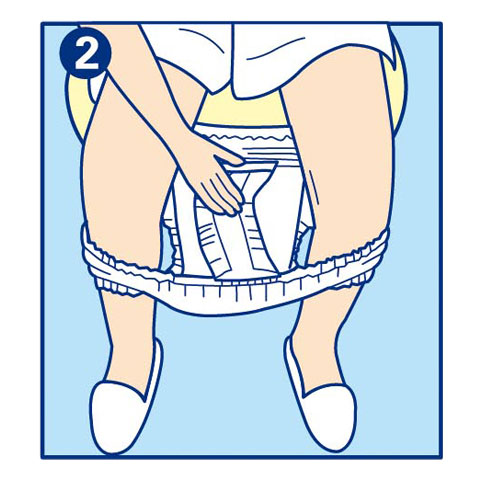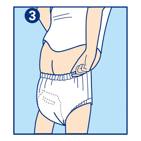 將內褲型紙尿褲拉上穿好並確認尿片兩端是否服貼